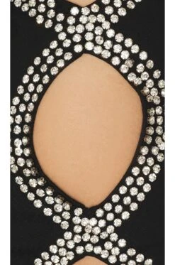 - Ponte fabric with crystal embellished trim at side cut-outs