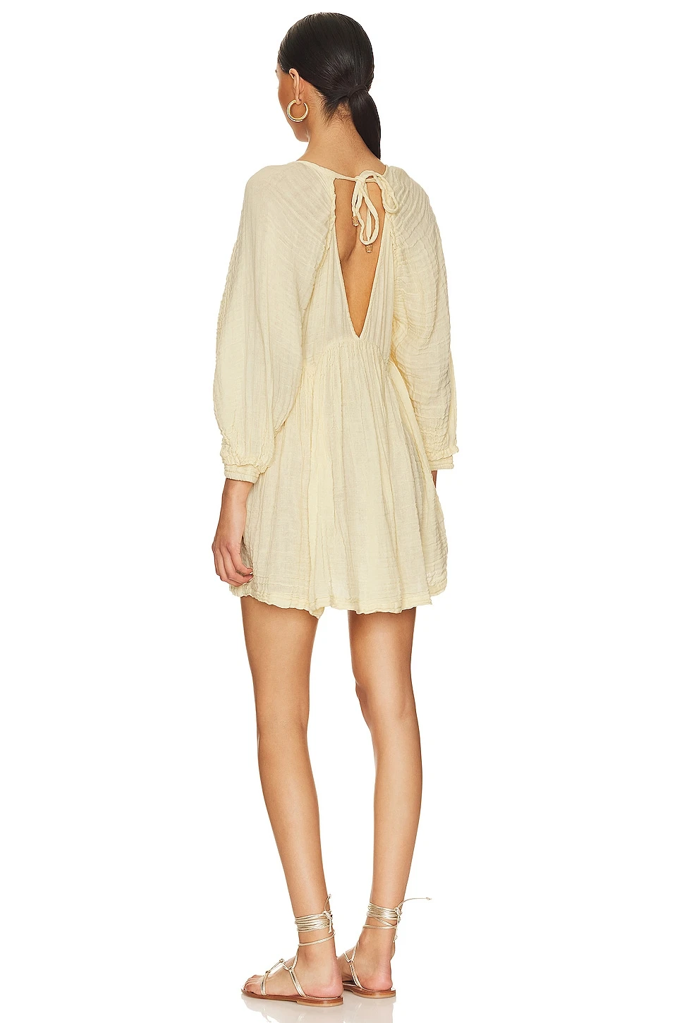 - Back cut-out with tie closure