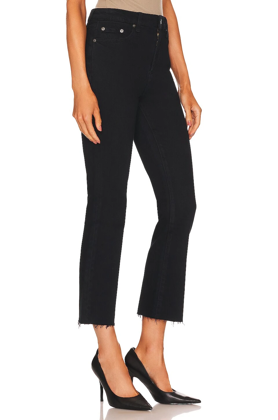 - Frayed raw-cut hem