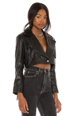 Self: 100% genuine leather.Lining: 100% poly. Professional leather clean only. Front button closure. Padded shoulders. Fringe trim. Imported. Revolve Style No. UNDR-WO61. Manufacturer Style No. MALBORO CROPPED BLAZER.