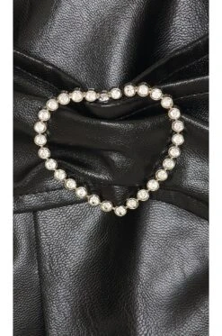 - Attached waist belt with crystal embellished heart buckle