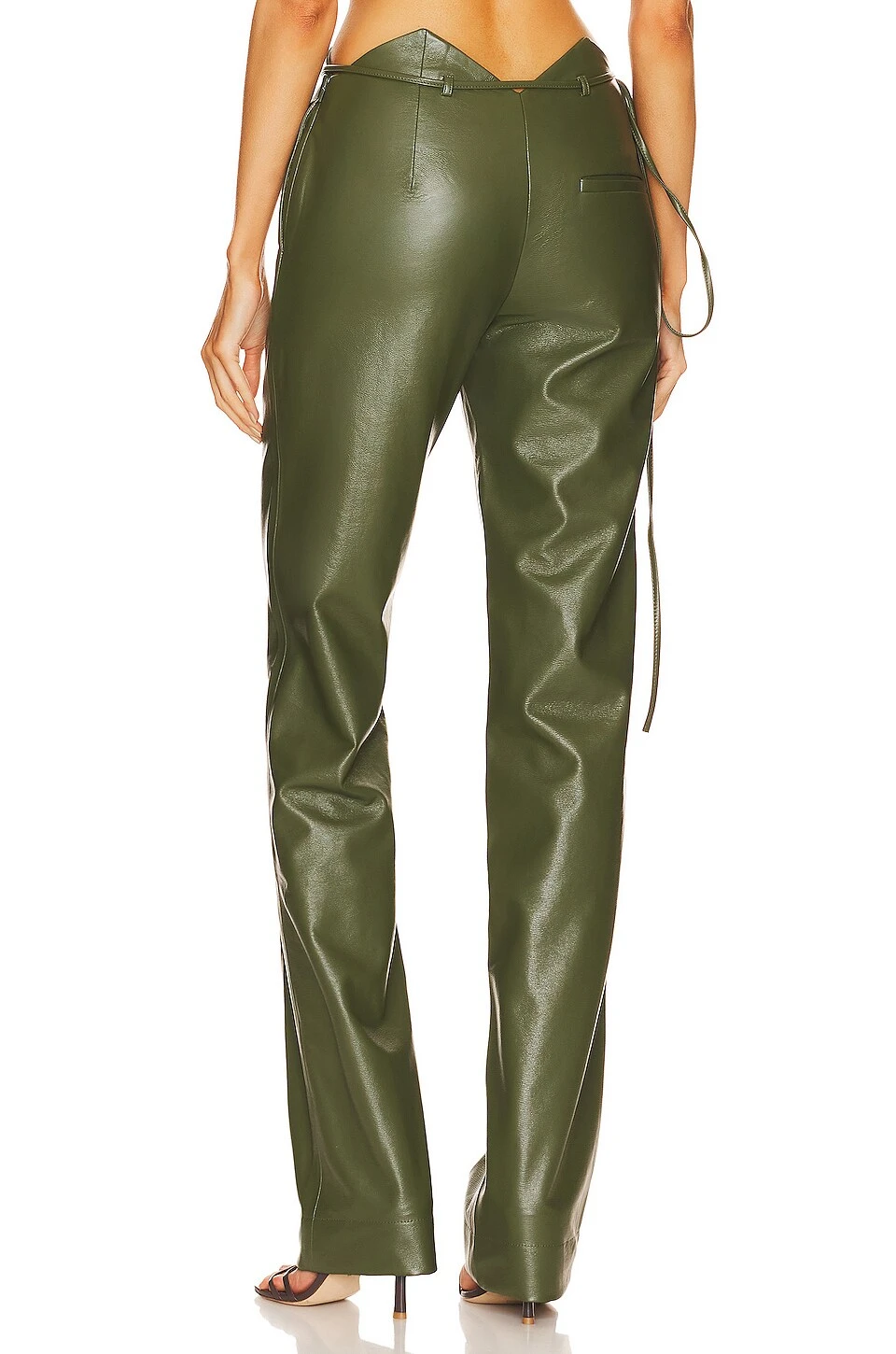 - Faux leather fabric with front pintuck trim