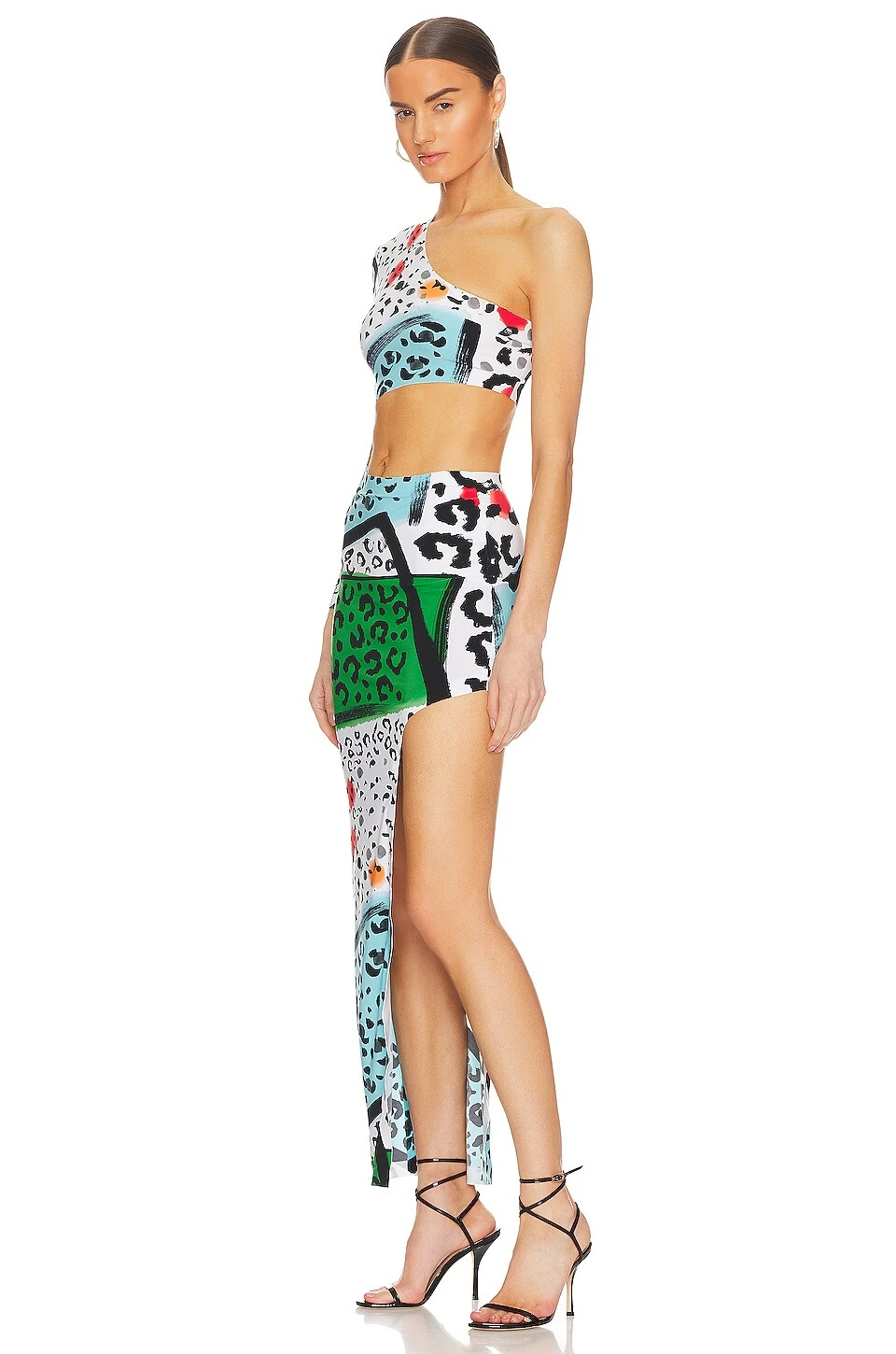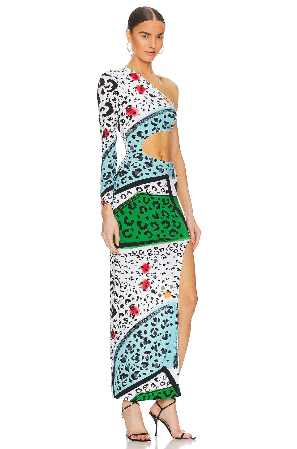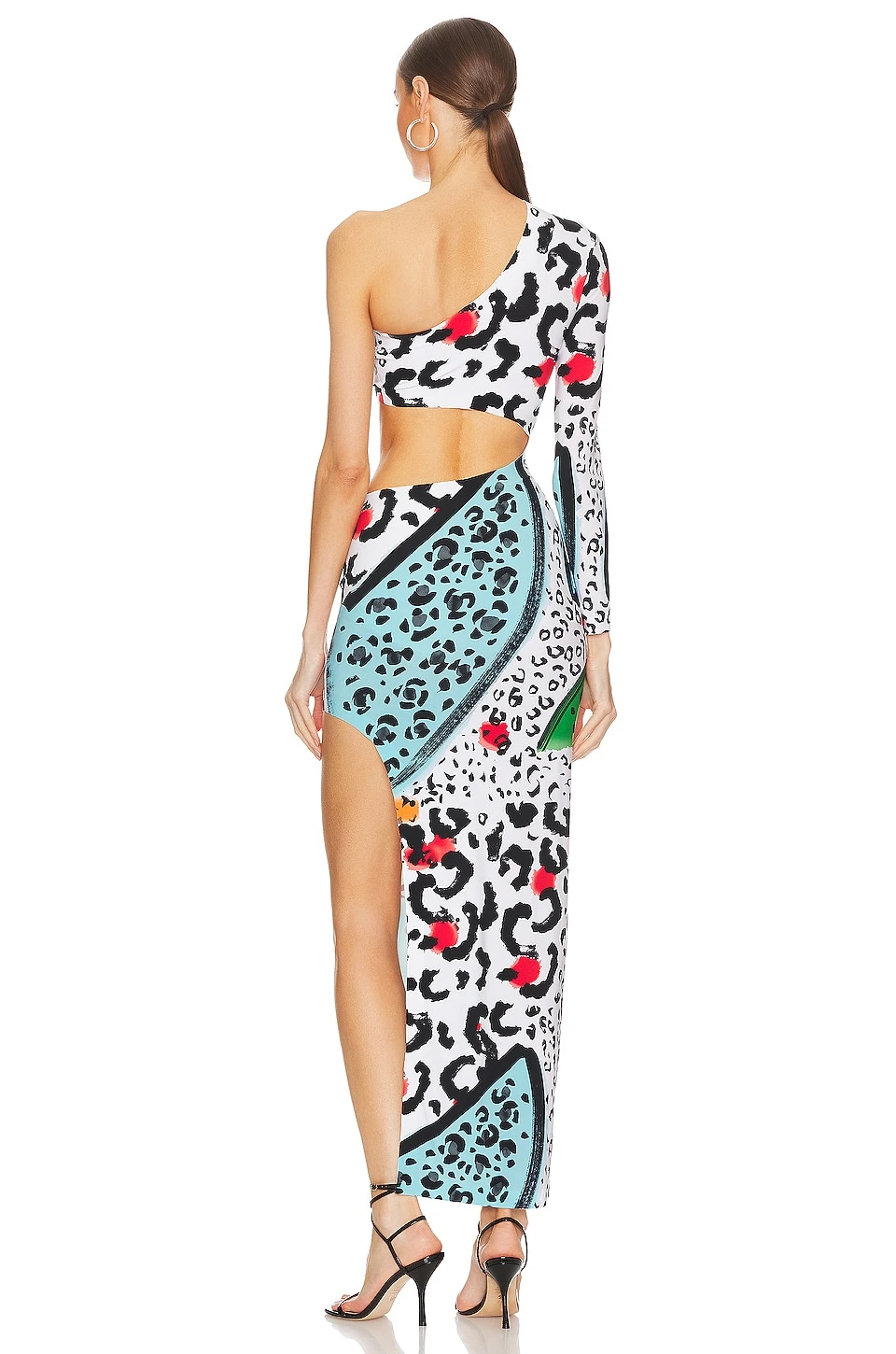 Norma Kamali Shane Wide Slit Gown Animal Patch