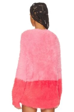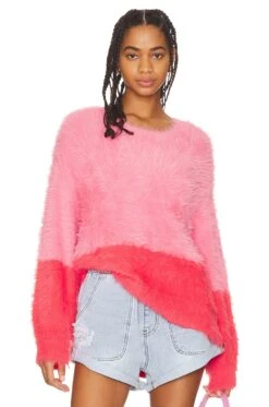 One Teaspoon Fluffy Colour Block Knit Sweater Pink