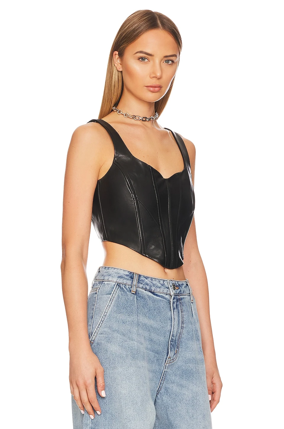 - Smooth leather fabric with kerchief hem