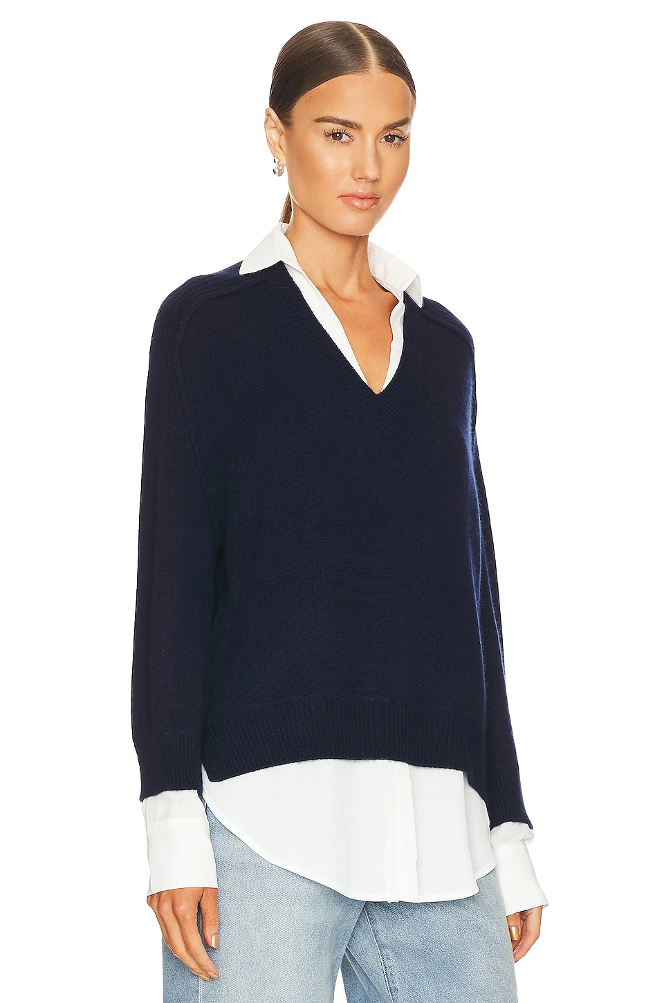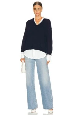 V-neck Layered Pullover Navy